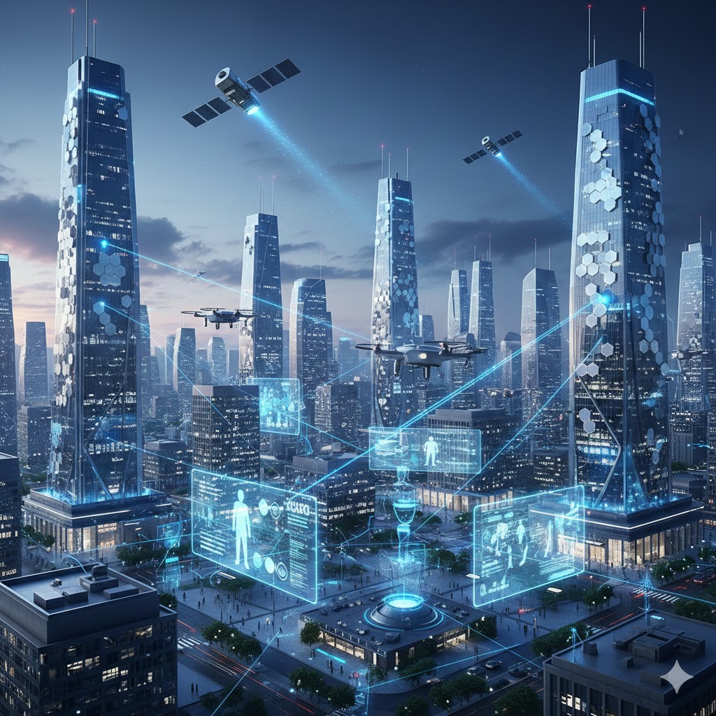 마지막으로 도심을 누비는 드론과 홀로그램 인터페이스는 0.1ms 이하의 초저지연 통신을 통해, 현실과 디지털이 실시간으로 동기화되는 모습을 구체화하고 있습니다.