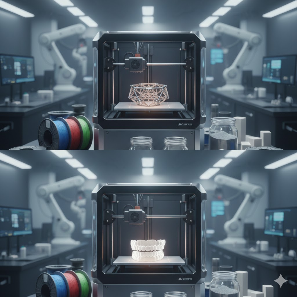 3D 프린팅 기술은 현재 PLA, ABS와 같은 열가소성 플라스틱 단계를 넘어 나일론, 금속 분말(티타늄, 알루미늄), 세라믹 등 고기능성 소재로 그 영역을 빠르게 확장하고 있습니다.