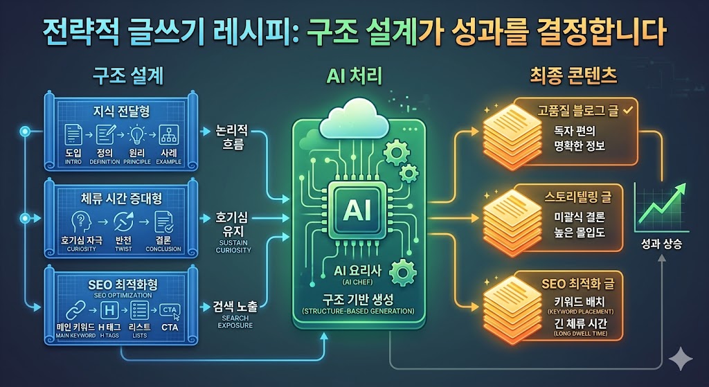 본 이미지는 이러한 구조 설계가 어떻게 최종 콘텐츠의 성과로 이어지는지를 체계적으로 보여주고 있습니다.