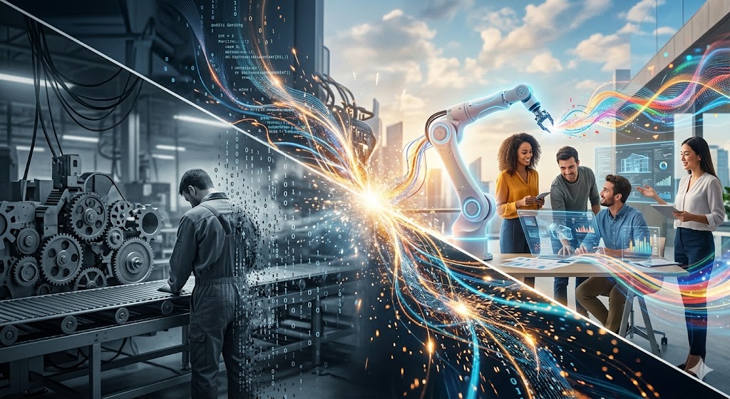산업 현장의 패러다임이 어떻게 변화하고 있는지 명확하게 보여주는 이미지입니다.