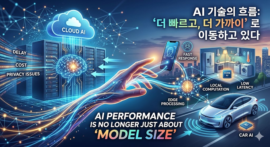 그래서 최근 AI 기술의 흐름은 “더 크게”가 아니라, “더 빠르고, 더 가까이”로 이동하고 있습니다.
